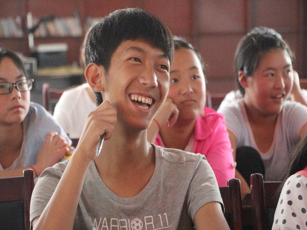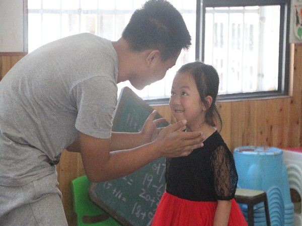 7月17日早上8点30分。满天星志愿服务队在壳壳寨进行支教活动。今天的早晨如往常一样每个班级都会进行诗文朗诵,在朗诵过后,教室里突然响起一阵熟悉美好的旋律,这让正在认真做作业的员工都忍不住抬头张望,一看是我们的蒋老师正在用小蜜蜂放“感恩的心”,同学们一头雾水,不知道为何老师会在上课的时候放音乐,这时杨老师出来说,今天我们学习感恩的心的手语,希望大家能仔细体会这其中的歌词,保持一颗感恩的心。