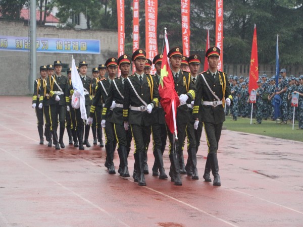 在蒙蒙细雨中,新生们安静的聆听着领导对他们寄予的殷切希望,从他们坚定的眼神中可以看出他们定不会辜负大家的期望,他们将会以开学第一课——军训为起点,用大学四年绘制出一份满意的答卷。