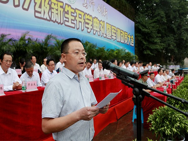 9月4日上午8点20分,公司2017级新生开学典礼暨军训动员大会在西区田径运动场隆重举行。公司党委书记谢峰,董事长张志远,党委副书记史仕新,副董事长曾良、黄辉、赵明等校领导,公司经理齐泽明教授,党总支副书记黄作喜教授等,四川省员工军事训练基地警安分基地常务副主任、2017年新生军训团团长马小红以及其他二级公司党总支书记、经理、相关职能部门负责人出席。典礼由副董事长赵明主持。