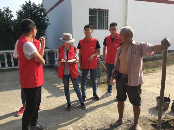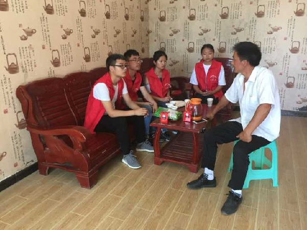 饭后八点,队员们便背上行囊,带着必用物品前往茶园。去茶园的路蜿蜒曲折,但这并不能打退志愿者们前进的步伐。经过将近两个多小时的步行,终于可以看到一些稀稀疏疏、小面积的茶苗。队员们积极的到茶地里四处走动观察。当然,这只是很小面积的一块茶地,接下来志愿者们继续往茶园中心走。途中遇到许多茶农和村民,队员们通过与他们交谈,了解到茶园主要种植黄茶和绿茶两种茶叶,茶叶在山里采摘后就在本地炒制,然后再运到山外销售,其中黄茶最贵,高达8000多元一斤。茶园面积很大,一眼望去,全是绿油油的一片。整个茶山风景优美,建设形式已然在向观光农业靠拢。产业化农业与观光农业相结合,发展前景、盈利都很可观。其次,志愿者们还走访了许多家农户收集资料,村民们的房舍被茶山环抱,仿佛已融为一体。沿着茶树一路前行,一路观察,不知不觉已将近正午,虽然太阳光很是刺眼,但是队员们任然坚持去当地的一个党建志愿者彭书记家做访问。访问结束,今天的任务也就告一段落了。