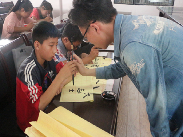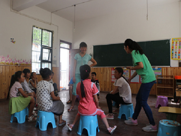 7月11日上午8点30分,满天星志愿服务队在阿坝茂县壳壳村开展了以“关爱留守儿童,放飞梦想”为主题的为期10天的支教活动。活动分为辅导暑假作业、绘画学习、书法学习、舞蹈学习、武术学习、歌唱学习、DIY手工制作学习等。 上午6点30分,志愿者们早早起床为接待员工而做准备。8点,员工们陆陆续续来到,在所有员工到齐后,开始举行开课典礼,志愿者们依次向同学们介绍自己,接着按照年级将所有员工分为大班、小班、初中班,然后讲解安全知识和注意事项。开课典礼结束。第一课开始,志愿者们辅导孩子们做暑假作业。孩子们写作业的时候很安静,志愿者们在身边关注着孩子们的动态,一个小时下来,孩子们没有丝毫的毛躁,写完后就立马交给自己的老师进行修改,老师修改后再给孩子们讲解出错的地方。写完作业后,为了让志愿者们与孩子们更好的熟悉认识,我们决定大家一起玩游戏,第一个游戏:抢凳子。孩子们与志愿者们跟随着音乐绕着凳子走,在音乐结束后迅速抢到凳子,没有抢到凳子的同学给大家表演一个节目。一场游戏下来,大家都活跃了起来,从以前的腼腆害羞到现在可以在志愿者们面前又蹦又跳。上午的课程就这样愉快的结束了。 下午2点30分,同学们准时到达教室。第三节课,小班是辅导孩子们做作业,大班开始准备汇报演出,学习舞蹈。第四节课:绘画学习,孩子们想象力很丰富,有些孩子绘图抽象空洞,画完后,志愿者们帮助孩子们把作品挂在墙上,孩子们高兴得手舞足蹈,第一天课程就在欢声笑语中结束了,放学后,志愿者护送每个孩子到家。