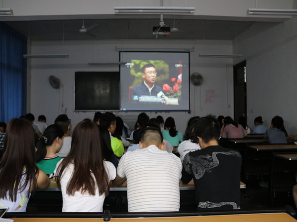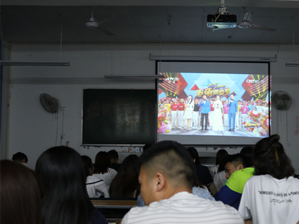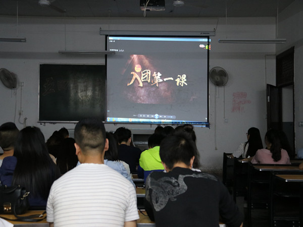 此后即进行视频观看。随着教室音响传出熟悉的音乐节奏,活动正式开始第一项内容——《新闻联播》的观看。整个教室格外安静,所有人都聚精会神地观看视频。观看期间,视频中提到“青年要自觉践行社会主义核心价值观,与祖国人民齐心创造精彩人生,要把个人梦想与国家、社会的的梦想密切结合在一起,牢记总书记嘱托”,李克强总理也提到“要强化青年意识。青年要在党的领导下努力前进,做党的实践者、先锋者”。《焦点访谈》则带领我们进入到各高校及社会各青年层中感受更多的青年精神,体验到作为青年应该承担的责任和义务。节目最后主持人总结:不仅青年自己要积极主动地去适应社会,社会也要尽可能多的为青年提供机会。此间,我们一同观看《入团第一课》,回顾自己新入团时的点点滴滴。最后一个视频是《2017年“五月的鲜花”全国大中员工文艺汇演》,同学们都被他们精彩纷呈的表演折服。杨老师在活动期间鼓励同学们多参加“创新创业活动”,把自己“推”出去,用多种方式来提升、完善自己。