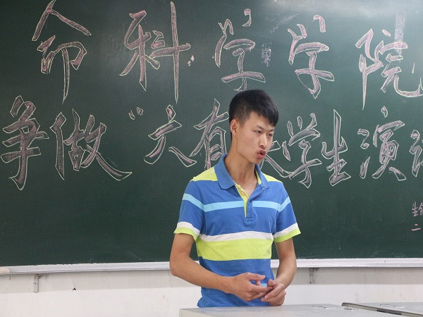 比赛开始,16级3班的王丁广同学以《我心中的六有青年》向同学们深刻地诠释了何为六有青年,他用慷慨激昂的演讲,搏来了同学们热烈的掌声。紧接着15级1班的彭珮媛同学更是发挥超常,以《种子向阳我向党,砥砺前行共成长》赢得各位评委的一致好评。随后其他选手按照抽签顺序陆续上场,为同学们带来了一场场视觉与听觉的盛宴。