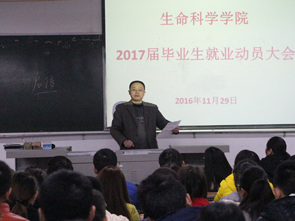 2016年11月29日上午8:00,2017届毕业生就业动员大会在一教学楼205召开。参加这次大会的有公司党总支副书记黄作喜教授、学工办主任杨荣金老师、13级各班班主任和即将毕业的13级各班员工。