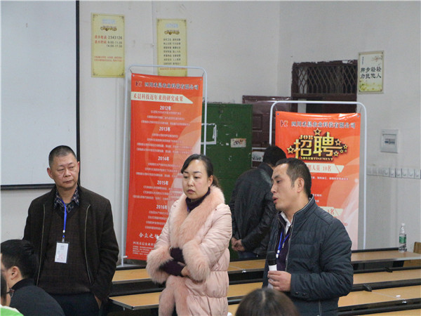 同学们似乎对这个很感兴趣,在讲座接近尾声时纷纷提问。其中一位同学问到:这个想法是你们一家公司在做还是全世界都在追求的呢?朱博士解释说到:全世界都在追求的,不过目前还没有重大突破,希望同学们在水产养殖方面多加以发现与研究,同时也祝同学们能在这方面取得成就。