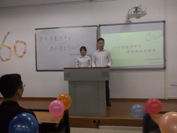甲子庆典,各班以不同的方式迎接她的到来,使得公司团组织生活会活动丰富,形式多样,对母校的热爱之情溢于言表。14级、15级作为资深内师人,熟悉内师的一草一木,他们翻出沉积多年的内师老照片,让人回顾起过往的点点滴滴。ppt剪影、祝福语视频、诗歌朗诵,书法展示无一不给人精彩的视角冲击。而作为大一的这股新鲜血液,也尽情的展示了风采。小品、校歌合唱、内师一角、有奖竞猜等等,让他们都尽快的熟悉了公司。