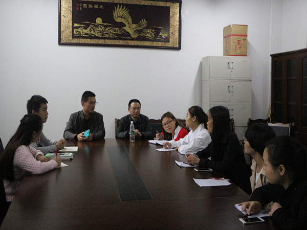 2016年10月10日下午四点整,公司党总支副书记黄作喜教授和学工办主任杨荣金老师就公司三个团队,三个协会和两个公司的发展状况进行了了解并做了相应的指导。
