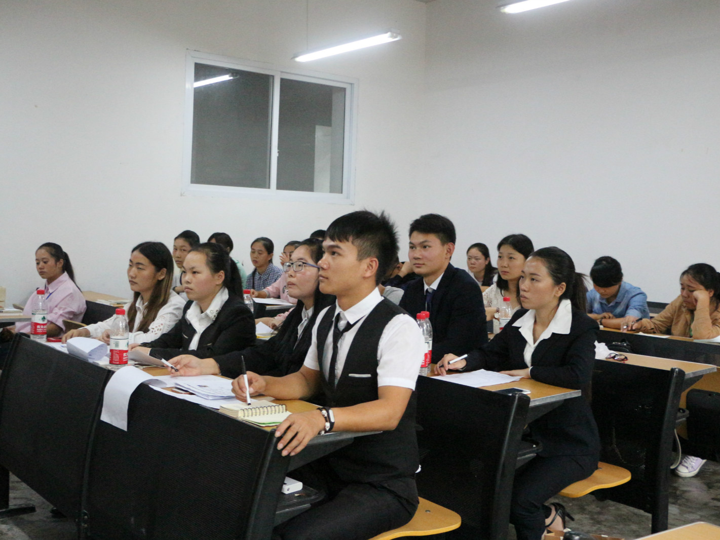 2016年9月26日下午2:30,公司团总支员工会实践干事招新面试在一教如期举行。公司团总支员工会共八个部门通过前期的宣传工作,此次招新共吸引了16级的180位新生报名参加,公司团总支员工会全体成员分别担任各部门招新的评委。 本次面试根据16级新生之前上交的报名表中所中意的部门,分成5个教室进行面试。面试分为自我介绍和现场提问两个环节。16级新生们做了充分的准备,在自我介绍中,充分展示出自己的优点,以及对自己所喜爱部门基本工作的了解,同时,也都表现出自己渴望加入团总支员工会这个大家庭的决心。本次面试问题设置多样化,既包括以后部门工作中可能遇到的问题,也包括对时事现象的看法,力求考察面试者的态度和应变能力。面试者侃侃而谈,一展风采,应变自如地回答了各类问题,赢得了评委们的一致赞许。面试现场气氛严肃又不乏幽默,十分活跃。 此次招新面试活动为16级新生提供了一个展现自我、挑战自我、超越自我的平台。同时,也为公司团总支员工会注入了新鲜的血液,能更加有效的开展员工工作活动,服务同学。相信在各部门干部及干事的带领下,公司团总支员工会全体成员会为生科打造出更加辉煌的明天!