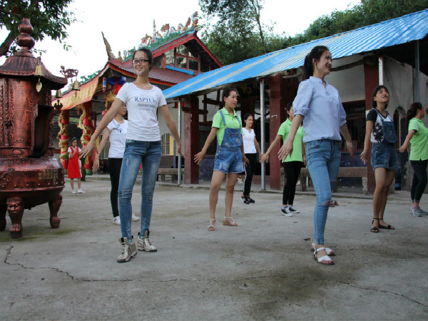 7月19日下午,在一位当地热心姐姐的帮助下,志愿者们排练起了自己要在文艺汇演上的舞蹈节目,想展现我们志愿者自己的风采。