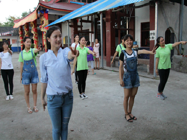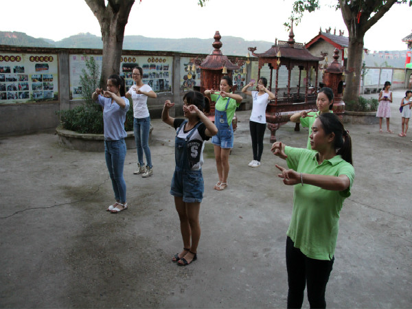 今天吃过午饭后,当地一位热心的姐姐来到我们的教学场地,在与我们的对话中了解到我们要在支教的最后举办一个文艺汇演,她建议我们志愿者一起在汇演中表演一个节目。最终,热心姐姐决定教给我们一个简单的小舞蹈。在吃过晚饭后,我们便开始了我们的舞蹈训练,我们先看着姐姐跟着音乐跳了一遍,然后姐姐再教我们分解动作,动作不难,重复的很多,因此没过多久便学的差不多了。看到学得差不多的时候,姐姐就放音乐叫我们跟着音乐跳。我们在夕阳中大汗淋漓的舞蹈着,感受到了属于我们的风采,我们接下来又反反复复跳了几次才结束。