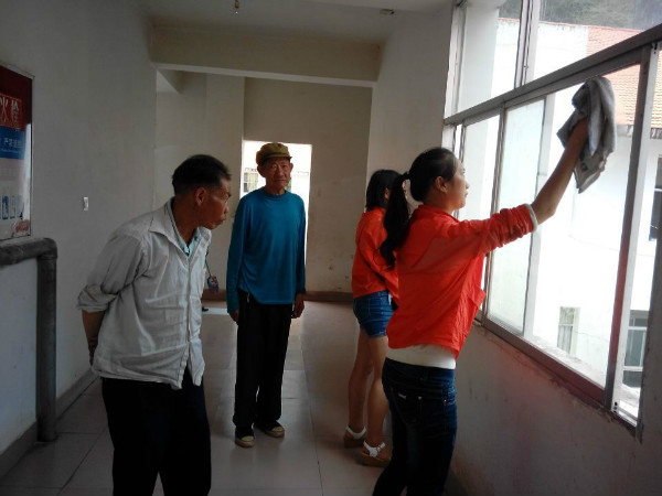 早晨6:30,志愿者们已经整理好行李,告别发箐乡,经两个半小时的车程到达会东县。大家迅速地安排好住宿,放置行李,随即前往敬老院。在去往敬老院途中,志愿者们为老人们买了奶粉、芝麻糊等营养品以及水果。上午10:30,大家才顺利到达敬老院,在敬老院管理阿姨的带领和介绍下,大家对敬老院的整体结构布局有了大致了解。考虑到许多老人生活不能自理,行动不便,于是,志愿者们把给老人买的礼品拜托给了管理阿姨。随后,大家向管理阿姨借来水盆和帕子,开始打扫敬老院,打扫内容包括擦门窗、护栏、地板等。看着志愿者们忙碌的身影,老人们脸上展露出温馨的笑容,他们还为志愿者指出哪些地方比较脏,需要打扫。打扫完敬老院后,志愿者们和老人们聊了会儿天,老人给大家讲到了他们平时的生活安排以及在敬老院的吃住情况等,他们就像是生活在一个大家庭里的兄弟姐妹,彼此相互依靠,相互关心,幸福快乐的生活着。聊着聊着,下起了雨,在志愿者们的陪同下,老人们回到了房间,志愿者们也要向老人们告别了。本次志愿活动于当天13:20圆满结束。