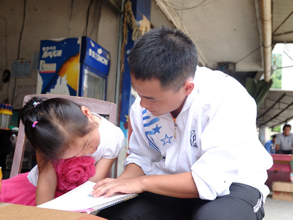 根据队员为孩子们制定的课表,15日的早晨第一堂课便开始了。因为教育条件的落后,这里的孩子是非常好学的,他们特别乐于接受新知识,对外面的世界非常好奇,渴望着有一天能够学有所成,走出大山。当了解到一部分的孩子因为家里条件不好,家住得太远,所以书读得比较晚,很难跟上别的孩子的节奏,队员们便对他们进行查漏补缺,重拾了他们对学习的信心。