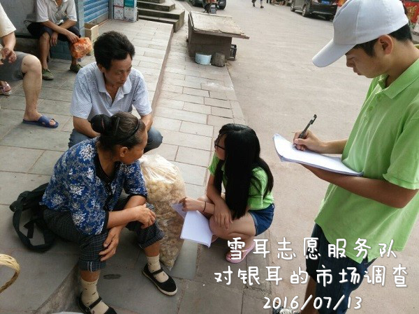 7月13日,陈河乡人民赶集的日子,队员们在天刚亮时就兵分两路去做市场调查。了解到当地银耳种植人群大部分是50岁以上的老人,年轻人都出去打工了,劳动力缺乏,银耳产量不高;今年的银耳比往几年更难卖出主要原因是,有外地银耳尤其是河南银耳冒充通江银耳往外销售。这严重毁坏了通江银耳的声誉。对这一问题,我们已向当地政府反映,希望得到解决。 7月14日,骤雨初歇,雨后的陈河云雾环绕,昭现出它独特的魅力与地理优势,正所谓“天生雾,雾生露,露生耳”。早上7点30分,雪耳志愿服务队全体成员高举队旗,伴着湿润空气,踏着泥泞小路,开启了银耳种植基地的参观之行。小伙伴们走了大概一小时到达第一个种植基地,种植面积有10多亩。负责人给我们讲述了种植银耳所需材料、技术、资金等情况,让队员们收获颇丰。随后走了半小时左右到达第二个种植基地,该基地负责人是一名回家创业的老员工,“师兄”对我们非常热情,他不仅向我们分享种植技术,还热情的向我们讲他回家创业之路。他的梦想就是回家创业,将通江银耳做大做强,推向全国。 调研回到家中,小伙伴们并没有停下脚步而是尽自己的力量为村民们做一些力所能及的事,例如割猪草,背猪草,洗衣服等。每一个动作,每一个步伐都是队员们的期待,雪耳志愿服务队的步伐永远不会停歇,接下来的日子,继续努力,加油!