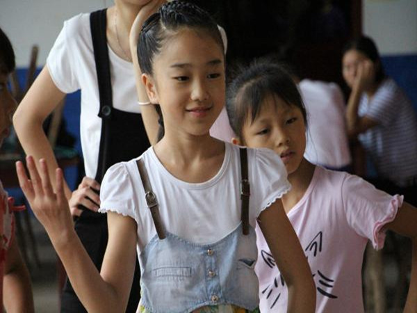 第二节课才正常授课。上课铃响后,4-6年级的员工跟随教他们舞蹈的队友来到室外开始了别开生面的舞蹈课。在授课前,先按高低顺序整队,整队完毕后,我们的队友先跟着音乐秀了一段舞蹈,然后再把刚才的动作分解成几个慢拍动作教给他们。刚开始,有的同学还比较腼腆,不敢大胆地表现自己,但是,随着队友的悉心指导和对周围同学的熟悉,他们渐渐放开了自己,可以随着音乐舞动。在第三节课开始前,1-3年级的同学便迫不及待地想出去,相较于高年级的同学,低年级的同学就活跃了许多,他们跟着音乐看着老师就能自己舞蹈起来。在整个舞蹈教学中,同学们都认真听讲,开心地在旋律中找到自己的节拍。