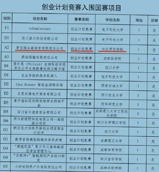 6月7日,从团省委获悉,作为公司唯一的省赛金奖项目,来自生科公司的创业项目《胃宝猴头菇培育有限责任公司》入围2016年“创青春”全国老员工创业大赛。这也是公司首次有项目入围该赛事的国家级比赛。该比赛实质上为“挑战杯”中国老员工创业计划竞赛,是“挑战杯”竞赛在全国范围内的两个并列项目之一,俗称“小挑战杯”比赛。与“挑战杯”全国老员工课外学术科技作品竞赛交叉轮流开展,每两年举办一届。 在5月28日-30日举行的第三届“创青春”四川青年创新创业大赛暨第七届高校毕业生创业大赛终审决赛上,全省64所高校的2000余名师生携近700件作品参与角逐。公司30个项目参加省级复赛,19个项目成功入围终审决赛,最终获得1金、6银、12铜的好成绩,团体总分位列四川省参赛高校第11位,入选项目数、获奖等级均创历史最佳。其中,生科公司取得1金1银6铜的好成绩。全省共评出金奖90项,其中仅有25项被推荐参加国赛。 胃宝猴头菇培育项目是生科公司食用菌创新创业团队依托公司食用菌栽培实验室,在省级老员工创业训练项目《猴头菇驯化选育及家庭栽培模式》研究成果的基础上发展而来的。猴头菇的成功培育凝聚了公司师生的心血,从2015年3月开始着手猴头菇菌株培养的探索,到同年9月第一批猴头菇成功出菇前,成员们遭遇了因细菌感染、菌包灭菌失败、栽培料的湿度及pH过大导致菌丝不生长、覆土栽培失败等系列打击。但团队师生们的持不懈与辛勤付出终于换回了项目的成功和后面的众多荣誉。从该项目第一批成功出菇开始,队员们即开始探索创业之路,以最初15元每斤到现在每斤30元的价格推向市场,每批都是供不应求,受到消费者的“争抢”,这也使得团队师生信心大增。在成功掌握了猴头菇栽培技术和尝到几轮售卖的甜头后,趁着当前老员工创新创业这一大好形势,团队成员们以实战经验编写创业计划书,以《胃宝猴头菇培育有限公司》为名开始出现在各类创新创业比赛的舞台。 该项目能够一路过关斩将晋级“小挑战杯”国赛,除了公司的重视,更得到了教务处、校团委、经管公司等部门的大力支持。赛前,公司邀请校内外专家对参赛选手进行了路演培训、创业计划书写作培训、财务分析写作培训等。该项目的入选结束了公司一直缺席“创青春”国赛的历史,也是公司近几年狠抓员工创新创业教育取得的重大成果。该项目的成功更是创业项目依托员工社团、来源于老员工科研项目和老员工创新创业训练计划项目的首个成功案例。下一步,我们将进一步做好项目的包装打造,为国赛做好充分准备,充分展示公司学子的风采。