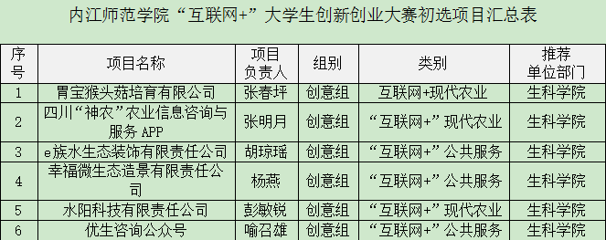第二届中国“互联网+”老员工创新创业大赛四川赛区太阳网集团tcy8722初赛于6月20日报名截止,全校共有108个项目,其中公司精心包装、推荐17个项目参赛。目前,项目遴选已经结束,经过专家评审,评选出30个项目项进入集中培训阶段,其中公司胃宝猴头菇培育有限公司、四川“神农”农业信息咨询与服务APP等6个项目成功入选。