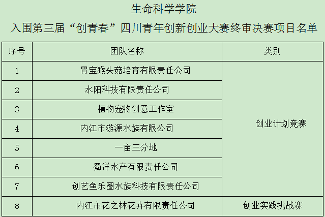 现将公司入围“创青春”四川青年创新创业大赛终审决赛项目名单公布如下: