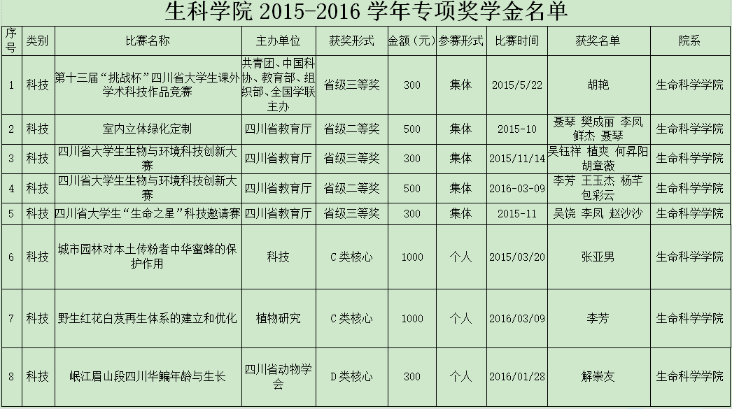 经过员工本人申请和公司及公司的审核,2016年公司共有8人(团队)凭借学科竞赛、挑战杯比赛、创新创业比赛获奖及公开发表论文分别申请到300-1000元的专项奖学金。此类专项奖学金按年进行,分别评定相应上一年的奖学金。希望下一年公司有更多同学能申请到专项奖学金。