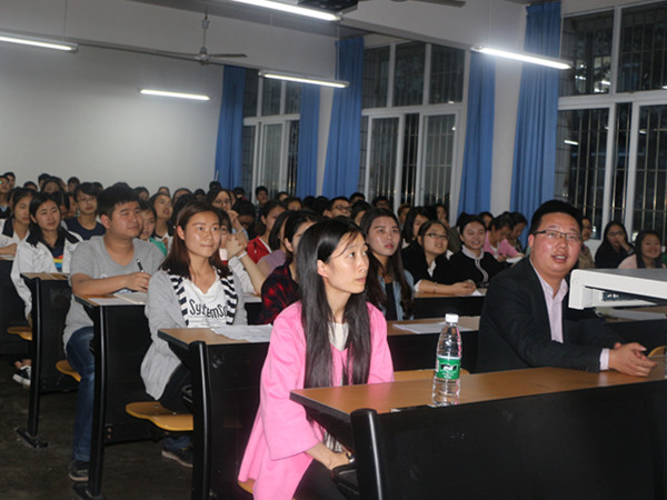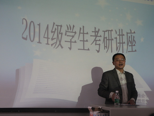 讲座中,黄书记首先登台演讲,他就自己考研的经历结合当前社会实际,从志向与理想、奋斗与收获、现实与抗争三个方面出发,向同学们仔细讲述了考研的现实作用和意义。