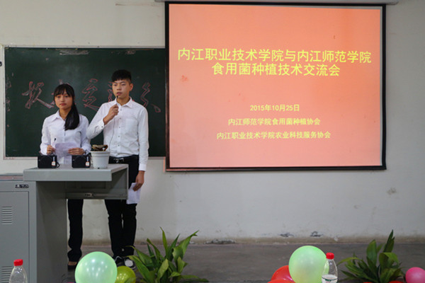 秋兰兮青青,绿叶兮紫茎。2015年10月25日下午,太阳网集团tcy8722与内江职业技术公司食用菌技术交流会在八教低阶隆重举行。
