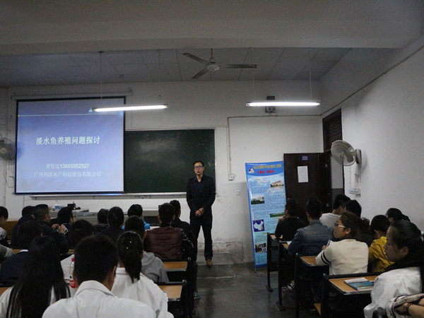 此次研讨会,公司有幸请来广州利洋水产科技股份有限公司的黄伦运老师。黄老师在利洋工司担任市场部总经理一职,已有十八年的行业从业经验。本次活动他就水产养殖第一线的一些问题提出探讨,针对水质、底质在水产养殖中的重要问题作出解答。黄老师养殖即为养生而不是治病的观点,让全场同学对专业知识又有了新的认知。当然,在专业宣讲之外,黄老师还向大家介绍了利洋公司的基本情况、企业文化、团队构成及未来发展规划等,并欢迎广大有志青年加入他们团队,实现自己的人生价值。