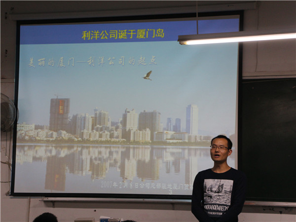 最后,段书记上台为本次活动作总结,他讲道:“利洋公司是水产行业的佼佼者,将与公司建立长期的合作关系,也希望有意愿的同学与公司联系,积极参与,通过实践检验自己的知识,并在实践中实现自我价值,成就梦想!“