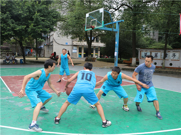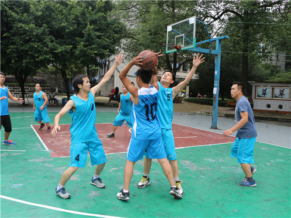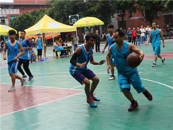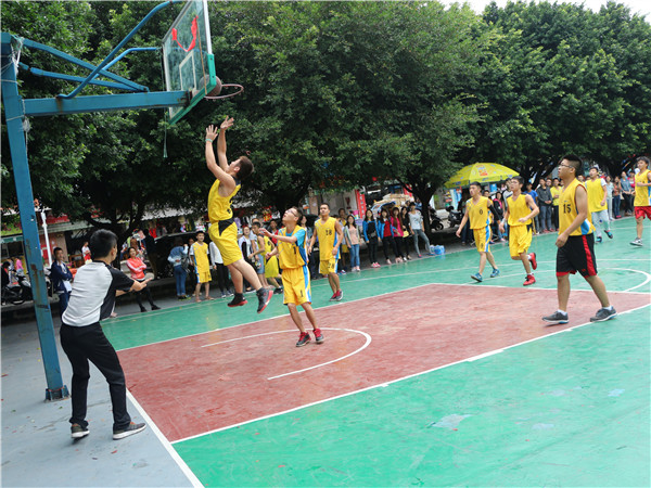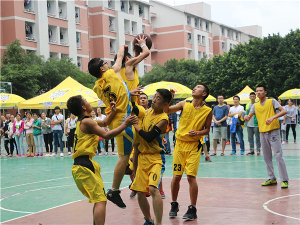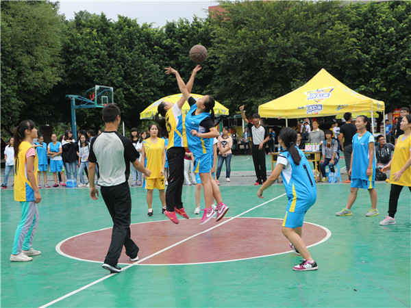 开始的口哨声随着观众的呐喊声吹响,看向场地一,是身着黄色球服的男子队,他们高跃扣球、带球转身、高空传球等娴熟的动作在一开场就赢得了场外观众的欢呼声。再将目光转向场地二,巾帼不让须眉的女子战队比赛也正在如火如荼的进行着,在观众的呐喊声,加油声中,身着黄色球服的13.3战队凭借队员之间的默契配合,比分暂时领先。此时,教师队与新生队的比赛也在同学们充满期待的欢呼声中拉开了帷幕。教师队在历年迎新篮球赛中都成绩优异,虽然是这样,面对强悍的教师战队,新生们也毫不气垒,反而更加认真地应对球赛,比分一直追得很紧,场下观众的阵阵尖叫声和掌声见证了这场精彩的比赛。场下的观众激情飞扬,场上的健儿忘我奔跑。