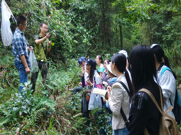 欢乐的时光总是显得特别短暂,缙云山为期五天的见习生活已经告一段落。远离城市的喧嚣,山上林里的宁静总是让人欢喜。5月25日,生科14.1的同学们出发了!那天下着蒙蒙的细雨,可这丝毫不影响同学们激动愉悦的心情。一路上,不乏欢歌笑语。上山的路,可谓是山路十八弯,绕得人头晕眼花,然而那些晕车的同学们却没有一丝抱怨。长达四小时的车程,同学们终于到达了目的地——缙云山。此次一同出行的老师有副经理岳兴建教授,陈文年老师,陈发军老师以及西南大学两位资深的教授蒋老师和张老师。