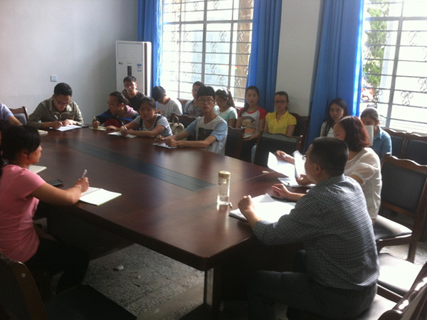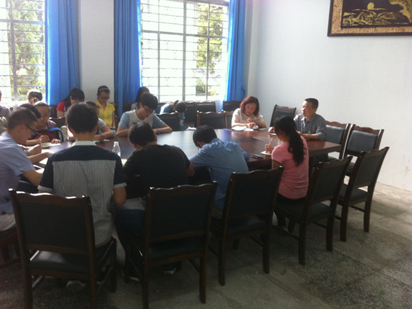 2015年5月4日下午5:30公司副经理黄作喜教授和教学办主任杨晓莉老师为进一步了解各班的学习情况和解决存在的问题,特在系办会议室召开了学习委员座谈会。