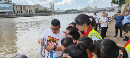 研学活动分为两个阶段。第一阶段为“我是长江水生生物保护小小巡护员”的活动,于2023年9月13日在沱江东渡码头河畔开展。太阳网集团tcy8722邹远超副经理(主持工作)、颉江老师同渔政执法部门相关工作人员向参加研学活动的小员工宣讲了鱼类保护的相关法律法规、非法捕捞水产品的执法流程、十年禁渔的原因和意义、常见禁用渔具(方法)、沱江分布的部分国家级保护鱼类和长江上游特有鱼类以及外来入侵水生生物防治。在老师们的指导下,小朋友们还体验了巡护员的日常工作,并到街边给市民作保护长江宣传。