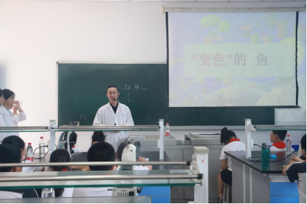 王永明副教授开展鱼类体色形成及变异的科普演示