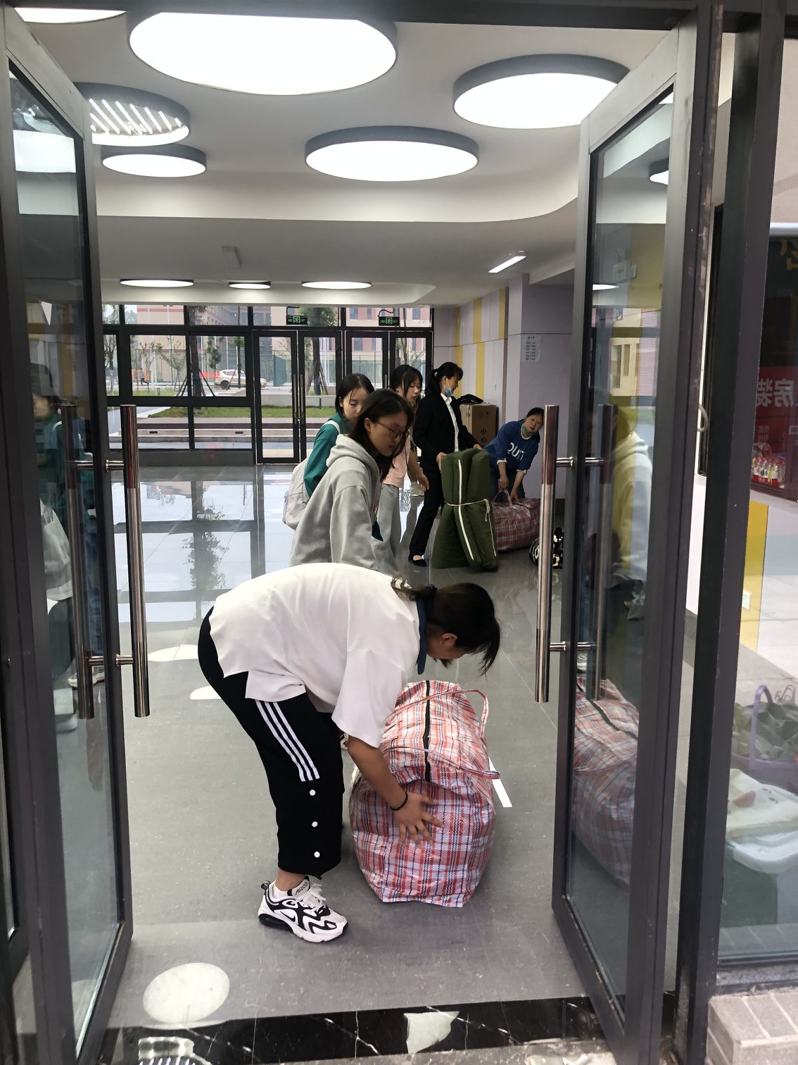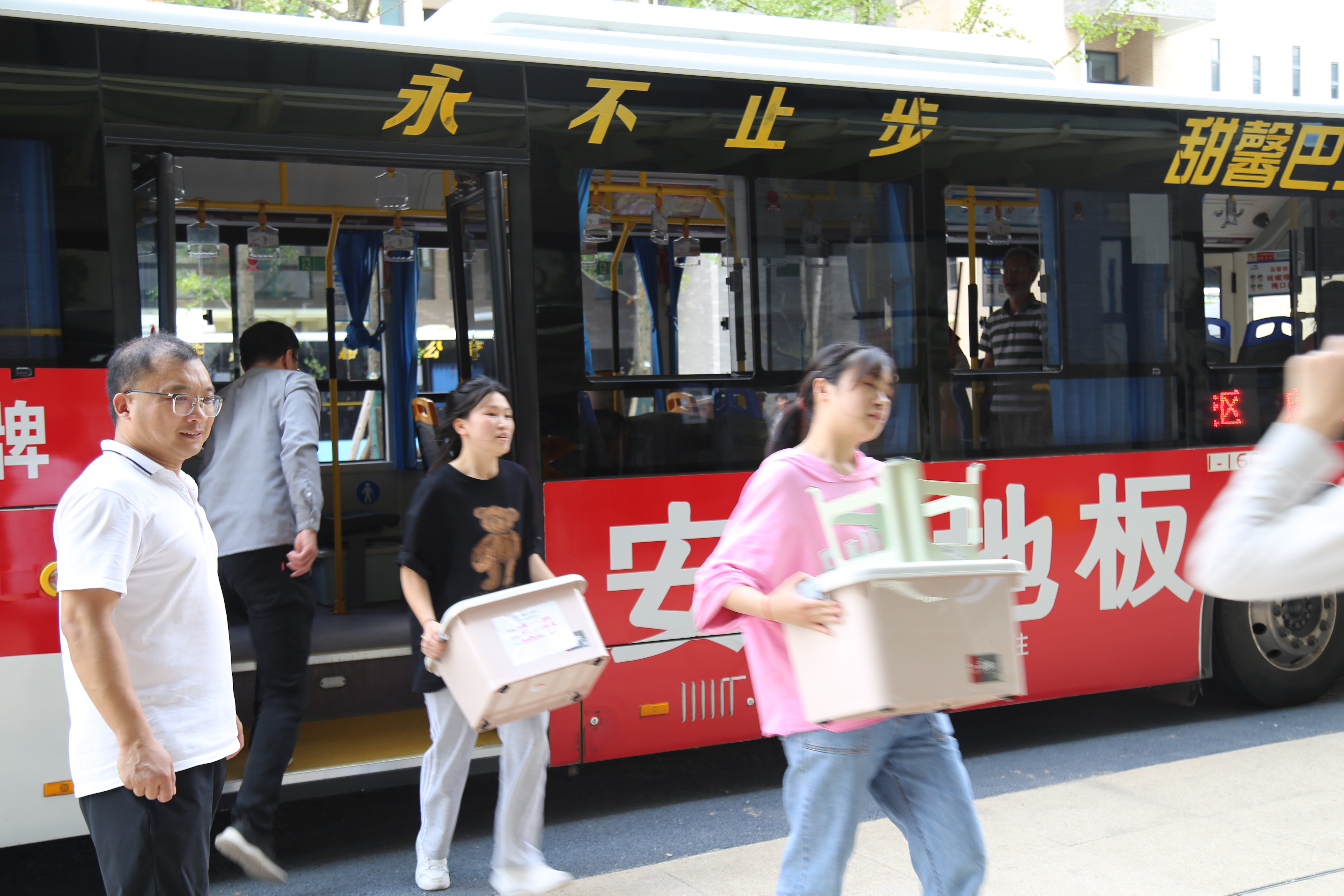 搬迁前,公司为同学们发放了编织袋,员工提前打包好行李。5月20日早上6点,搬迁工作正式启动,根据车次,员工依次将个人行李存放到指定等待处,等待接送车辆。每班车由3名老师和2名员工志愿者负责,其中1位老师在老校区位点统筹好员工干部、志愿者做好下一批次员工的搬迁准备工作,提前让员工将行李搬到指定的上车位置,以便搬迁工作顺利进行。跟车老师注意在行车过程中员工安全,跟车志愿者留意员工在车上是否身体不适,下车时行李是否有遗漏。新校区1位负责老师主要统筹员工下车后行李疏散,员工安全等问题。各宿舍楼下由2-3名志愿者,帮员工照看行李,维持秩序,引导员工到宿舍管理员处办理入住手续。搬迁期间,全体教师、员工干部和志愿者深入搬迁一线,帮助同学们搬运行李,尽力解决同学们的各类困难。全体师生井然有序,互相帮助,全力确保了搬迁工作安全、有序、按时完成。