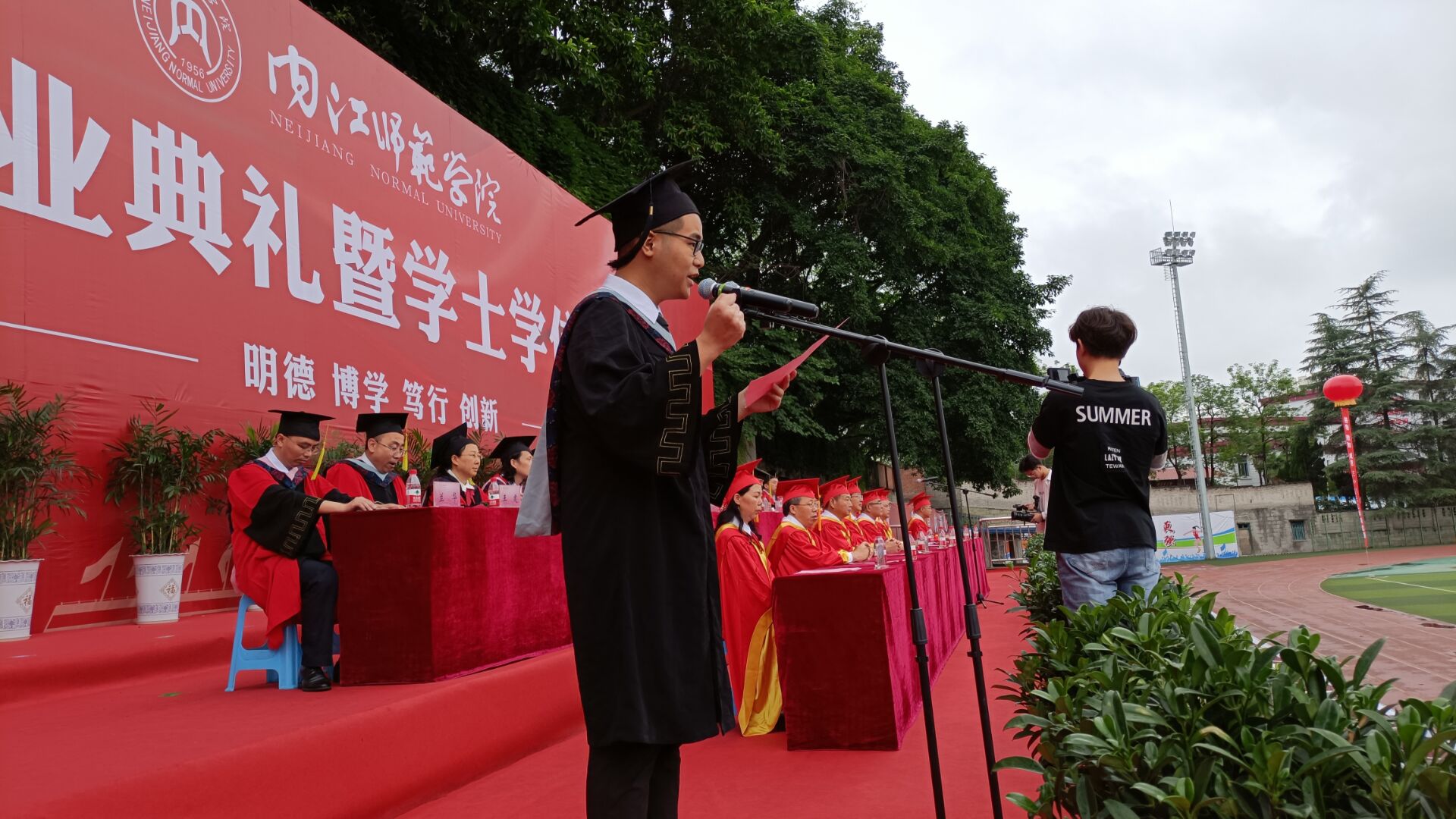 惜别母校,情系师院。为了让公司学子告别昔日在校时光,树立对未来的信心,更加顺利地从公司过渡到社会,公司于6月18日上午8:00在田径场举行了2021届员工毕业典礼暨学士学位授予仪式。公司出席此次仪式的人员有:经理张志勇,党总支副书记张楠等教师以及全体获得学士学位的毕业生。
