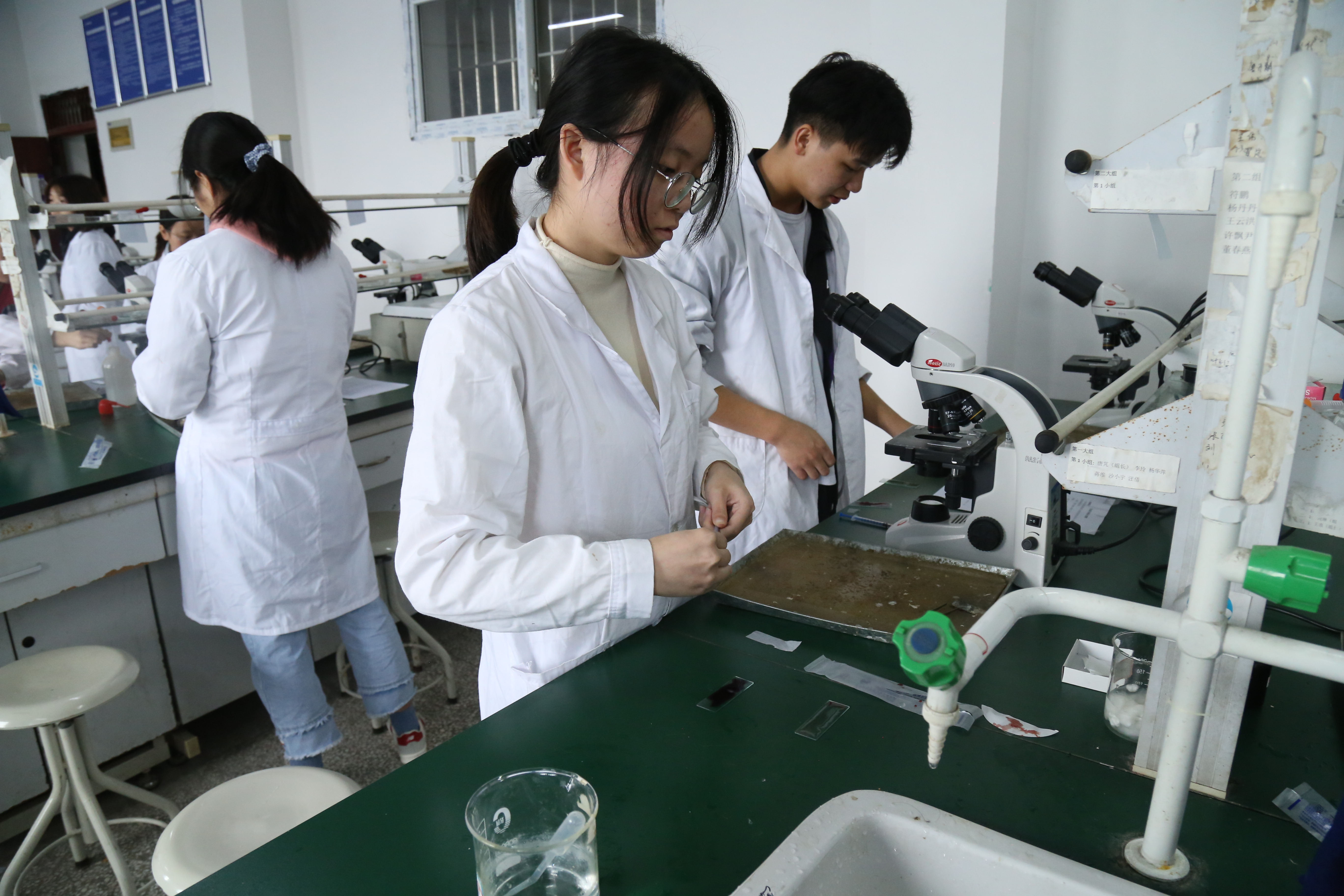 为了进一步浓厚校园学习氛围,锻炼员工的创新能力和实践动手能力,展示公司立足专业的班级特色文化。公司于2020年11月4日在八教实验楼举办了第四届实验技能大赛。本次实验技能大赛主要由实验技能大赛和实验技能作品展示两部分构成。实验技能大赛有两个项目:叶脉横切观察和鱼血涂片制备与观察。实验技能作品展示以腊叶标本、叶脉书签和水族造景三种形式展出。本次实验技能大赛在八教508实验室和416实验室进行,参与比赛的员工共计135人,为比赛评分的老师为李兴霞老师。