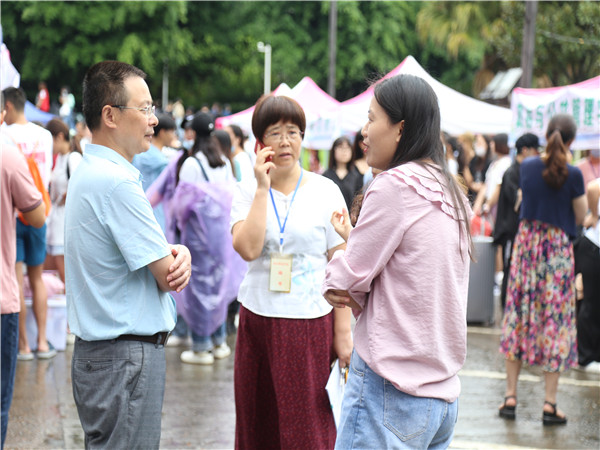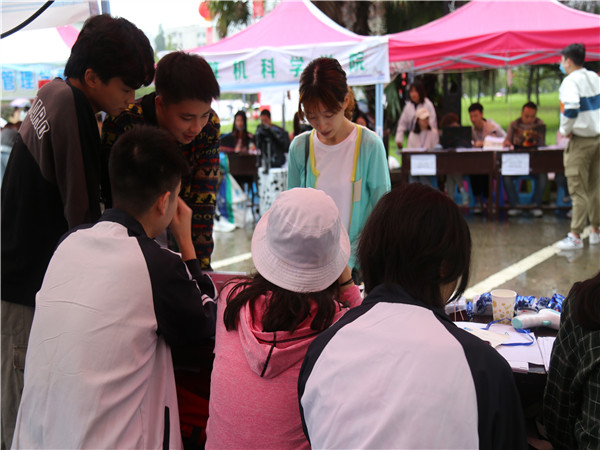 志愿者们经过昨天的迎新工作后,对新生的报到流程更加熟悉,很快就进入了工作状态。志愿者们各司其职,井然有序,他们主动帮助新生拿行李,带领新生到各个地点办理手续,领取军训服装,购买卧具等生活用品,并将新生送至寝室。在这个过程中,志愿者们积极向新生们介绍生科公司,耐心解答他们的各种问题,并且提醒新生注意个人安全,保护好个人物品及钱财。在迎新过程中,公司党总支书记黄作喜教授,副经理谢碧文教授,学工办主任李清敏老师也来到了我们的新生报名点进行视察,询问迎新工作点的工作情况,并嘱咐迎新的志愿者们要注意防寒保暖,下雨天路滑一定要注意安全。在视察过程中,黄作喜教授提醒前来报到的同学们要有警惕之心,注意自己的人身财产安全,特别是校园网络安全,提高自我保护意识。要做到通讯畅通,重要财物不离身,注意寝室通风,防火防盗,不私拉电线,出门时要及时落锁。