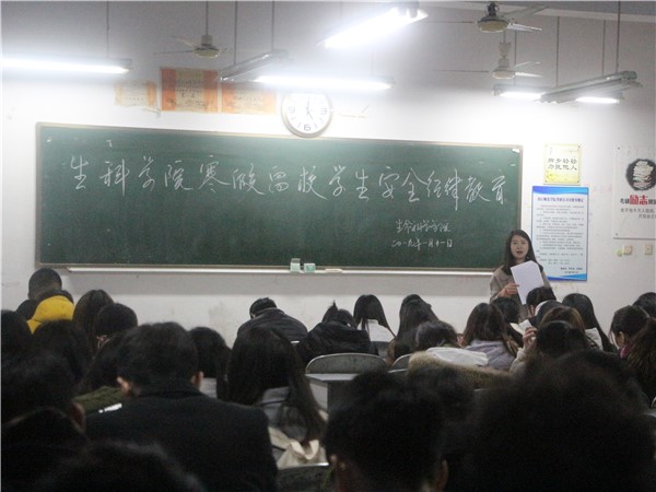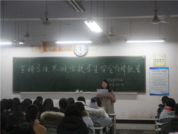 会议开始,鲜英老师向同学们强调了寒假留校期间要合理安排时间,考研的同学要利用好时间;寝室卫生要保持整洁,外出时尽量结伴而行;在寝室内要注意用电的安全;在留校期间不得收留外校人员在寝室留宿;过年期间如果有同学要回家过年,必须提前写好请假条交给宿舍管理员,不得私自离同学纷纷表示会严格遵守公司的相关安全制度,时时刻刻注意自己的人身财产安全问题,有任何问题一定会及时向公司反映,希望在公司度过一个充实美好的寒假生活!
