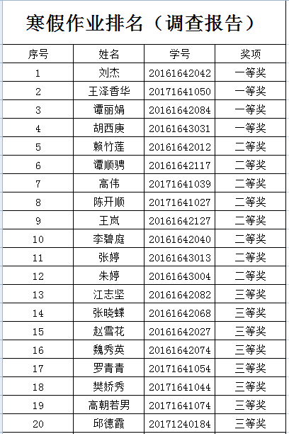 这学期一开学,每个班级的员工都及时上交假期作业,公司对部分优秀的作品进行了评奖,调动员工学习的积极性,现将获奖名单公示如下: