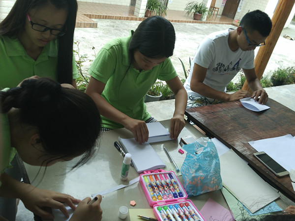 今天不同往日,满天星志愿服务队的队员们今天上午并没有去村委会进行支教,而是在居住地准备今天下午活动的道具。2016年7月20日是满天星志愿服务队进行支教的第十天,这也是服务队进行的最后一次支教。