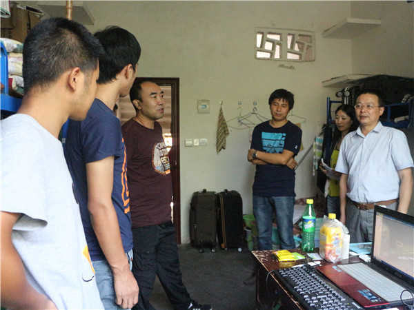 6月15日下午5点,公司经理齐泽民教授,党总支副书记黄作喜教授,辅导员李清敏老师及毕业班班主任走访了公司毕业生寝室。
