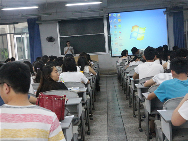 为更好的提升师范生的师范技能,公司于2016年6月19日上午8:00在五教南201教室举办了第八届说课讲课比赛,大赛开始前,由付伟丽老师上台介绍到场嘉宾,他们分别是公司邹万全老师及内江各中学的高级老师,同时他们也将作为此次大赛的评委。