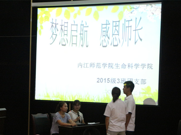 15级1班生活会开始前主持人首先播放了一段关于老师的视频,让同学们了解老师的日常工作,体会老师的辛苦。14级2班生活会现场几名同学深情的朗诵表达出了对母校的热爱和对老师的感谢。15级3班的主题生活会上以小品《我与老师的那些事》将此次活动推向高潮,幽默风趣的语言展现了一种新型的师生关系。14级4班的生活会中,在主持人对母校的精彩介绍后进入了游戏环节——我与老师,游戏规则为音乐声起时开始传递玩偶,音乐停时玩偶停留在谁的手里,谁就说出一句自己想对老师说的话,在本轮游戏中,大部分同学都用自己的话语传递出了自己对老师的感谢和对老师崇高的敬意。15级2班的主题生活会在主持人龙卫军的带领下全班同学畅谈了自己的梦想,每一个同学大声说出了自己内心的想法、对未来的期望和计划。14级3班的生活会现场,一首《感恩的心》响起,全班同学对老师衷心的感谢飘向校园的每个角落,感谢一路上他们的引领,感谢他们的教诲。