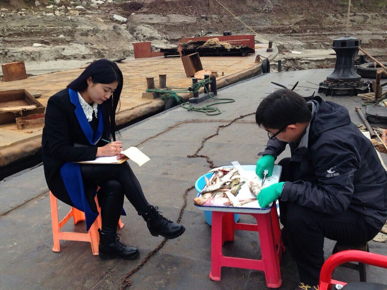 通过收集长江野生鱼类对其进行分类和生物学测量,同学们全面学习了鱼类的分类学知识和渔获物的结构、数量分布情况及其生物学特性;同学们在长江所张辉博士的指导下,学习了水声学探测仪的安装使用、数据采集和噪音处理等相关技术,并能在老师的指导下,进行“Z”字交叉式走航式移动探测。在吴金明博士的指导下,同学们学习了江底采卵的主要方法,通过拉网,将获得的底栖水生生物进行逐一鉴定并用分样筛筛选,甲醛固定,并进行渔获物统计计数和分析。并学习了手持GPS定位仪、超声波遥测及水下视频成像仪等仪器的工作原理、使用方法。