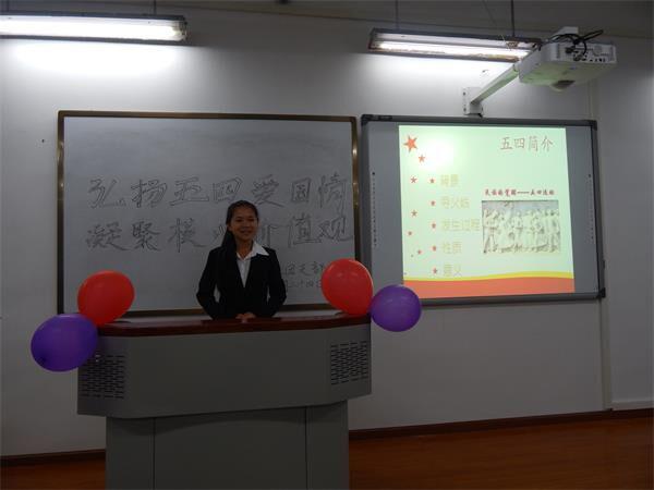 传承五四精神,从点滴做起,用实际行动肩负起自己肩上的重任,助力中国梦早日实现。希望各班在今后的学习生活中继续传承五四精神,将核心价值筑牢在心中。