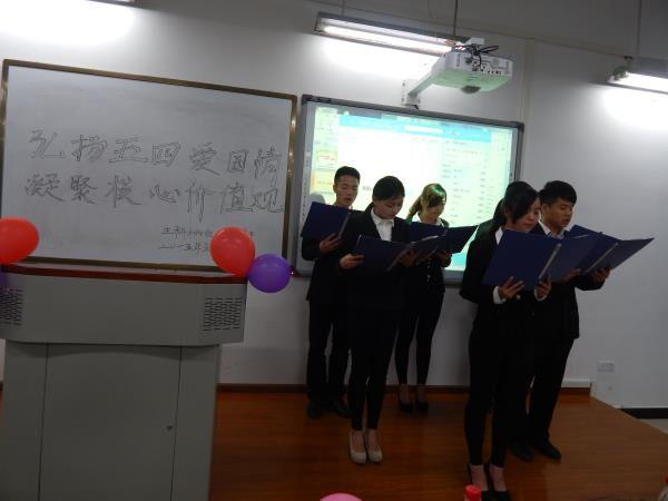 其中,2014级2班围绕此次主题5月24日晚7点在五教北703召开了公开团组织生活会,并邀请了公司各班班长和团支书到场观摩。本次团组织生活会在嘹亮的国歌声中拉开了序幕,紧接着是PPT展示,带领同学们回到了五四运动的年代,接下来是生动的话剧表演,幽默地揭示了爱国不是空喊口号,而是要靠实际行动的深刻意义。整个活动过程同学们都积极参与,热血沸腾的掌声在整个教室回荡,彷佛回到了当年为国奋战的时刻 ,不经感叹时间如梭,岁月易逝。而2014级1班的班会则打破了历史的那份枯燥,将有奖竞答的答案放在视频中,以通过拨打相应的电话号码来进行抢答,同学们也都积极响应配合。游戏环节更是是精彩万分,三人模仿游戏让男同学们出尽风头。2014级4班的同学也不甘示弱,不仅有形式多样的活动,激动人心的游戏抢答环节,还有最值得难忘的暑期三下乡募捐仪式最为班会结尾,同学们都献出自己的一份爱,将自己的微爱带给山区的留守儿童。