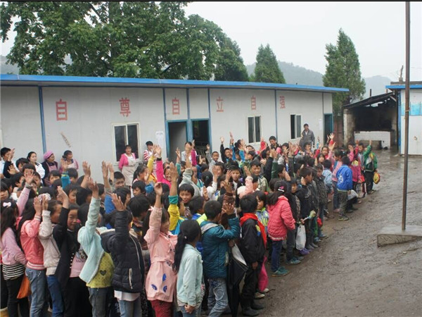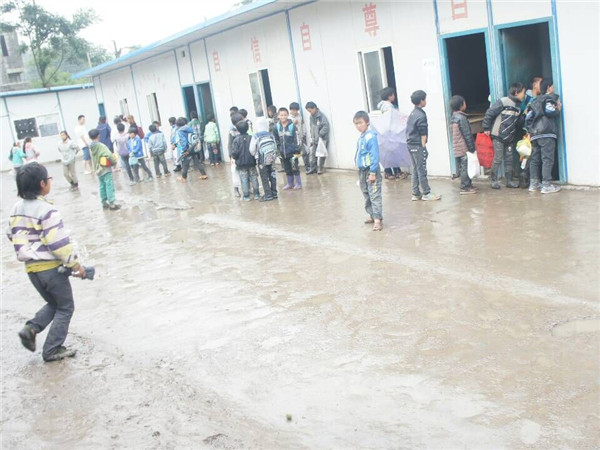 下车后,“三尺讲台伴人生,两袖清风塑栋梁”的句子首先进入我们的眼帘,这无疑是对老师这个职位最真实的写照。推开锈迹斑斑的大门,我们震惊了,只有两排活动板房,而孩子们正安安静静的在其中考着试。板房的中间,鲜艳的五星红旗正飘扬着,在它 的注视下才能真切的感受到,这里,是个公司,是孩子们学习的天堂!