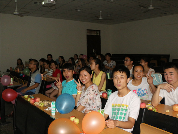 相较于1班那种浓厚离别气氛来说,11级2班则显得欢乐许多。6月15日晚,他们相聚在八教底阶一。班会之初,2班宣传委员为同学们播放幻灯片——《这是我们的青春》 一张张笑脸道出他们喜悦的青春,一场场聚会写下他们纯真的友谊,一个个拥抱展现他们甜美的爱情。张楠老师也讲了几个注意事项,7月18日人才交流中心的报道及档案的确认等。随后张老师便加入同学们的游戏队伍,与同学一起嗨。猜数字游戏惊喜连连,让同学们再添笑语。