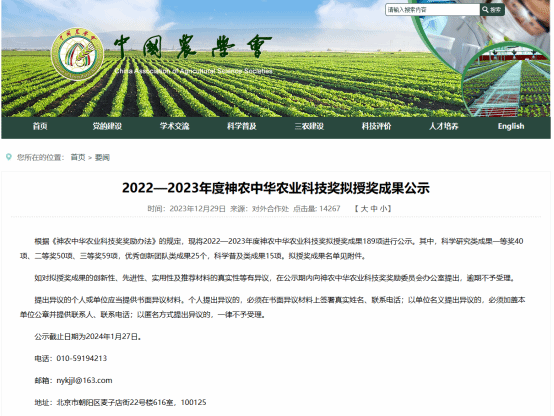 公司科研成果获2022-2023年度神农中华农业科技奖