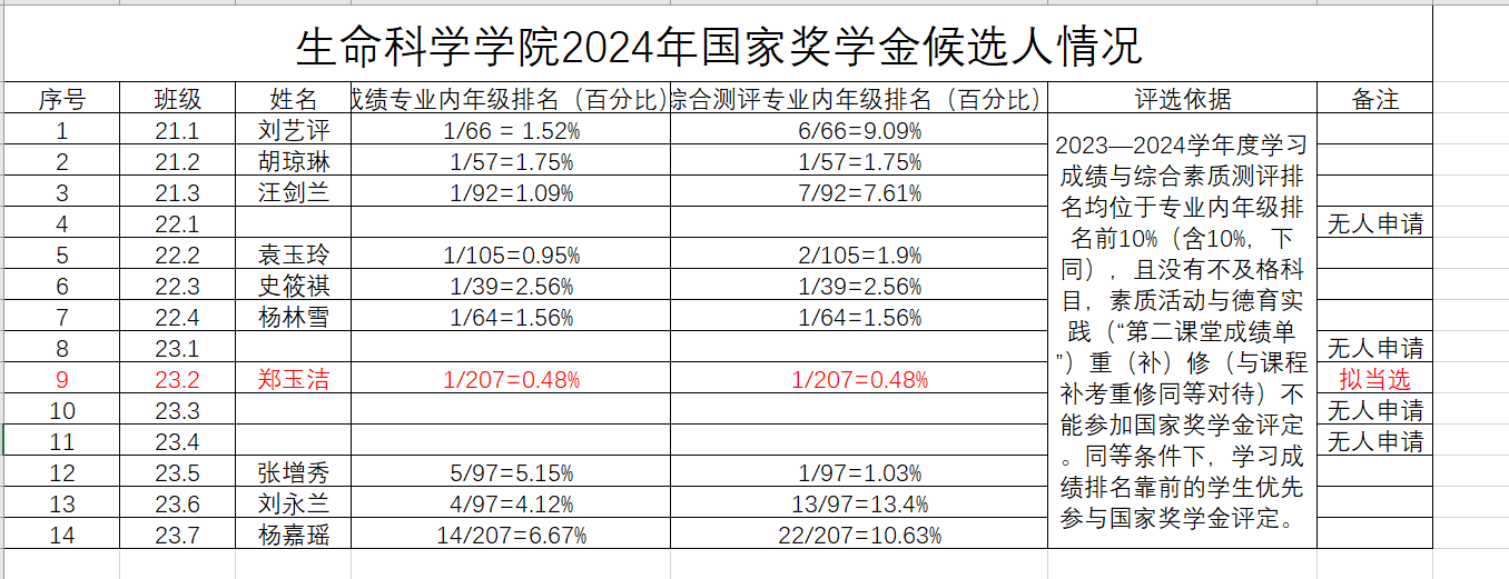 按照省教育厅关于国家奖助学金评审工作的相关要求和《太阳网集团tcy8722关于做好2024年国家奖助学金评审工作的通知》等文件精神,经员工本人申请,按照班级推荐、公司审核的程序,2023级2班郑玉洁同学拟获得2023-2024学年度国家奖学金,现将拟获奖员工名单进行公示。如有异议,请于公示期内实名以书面形式向公司反映。