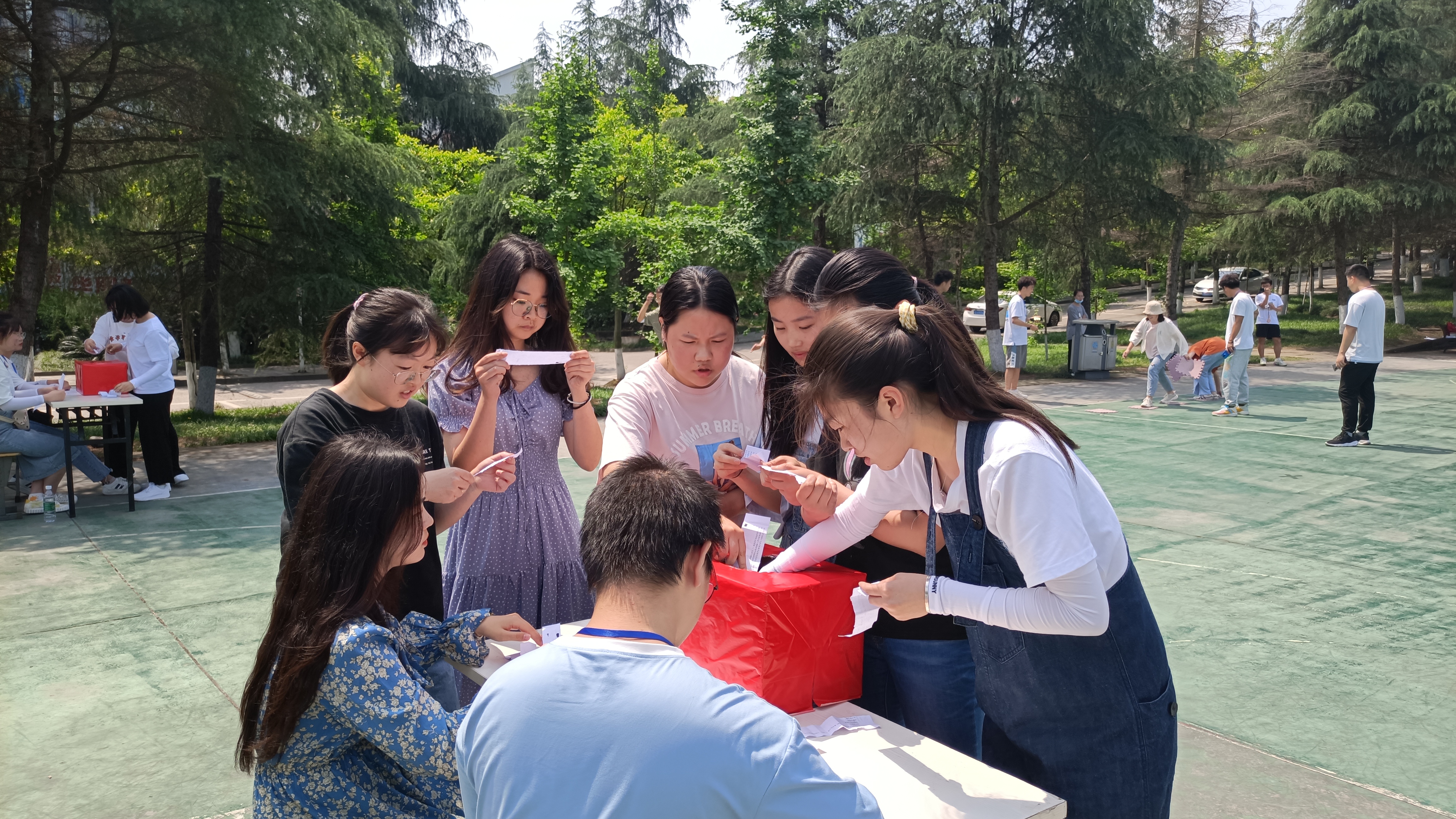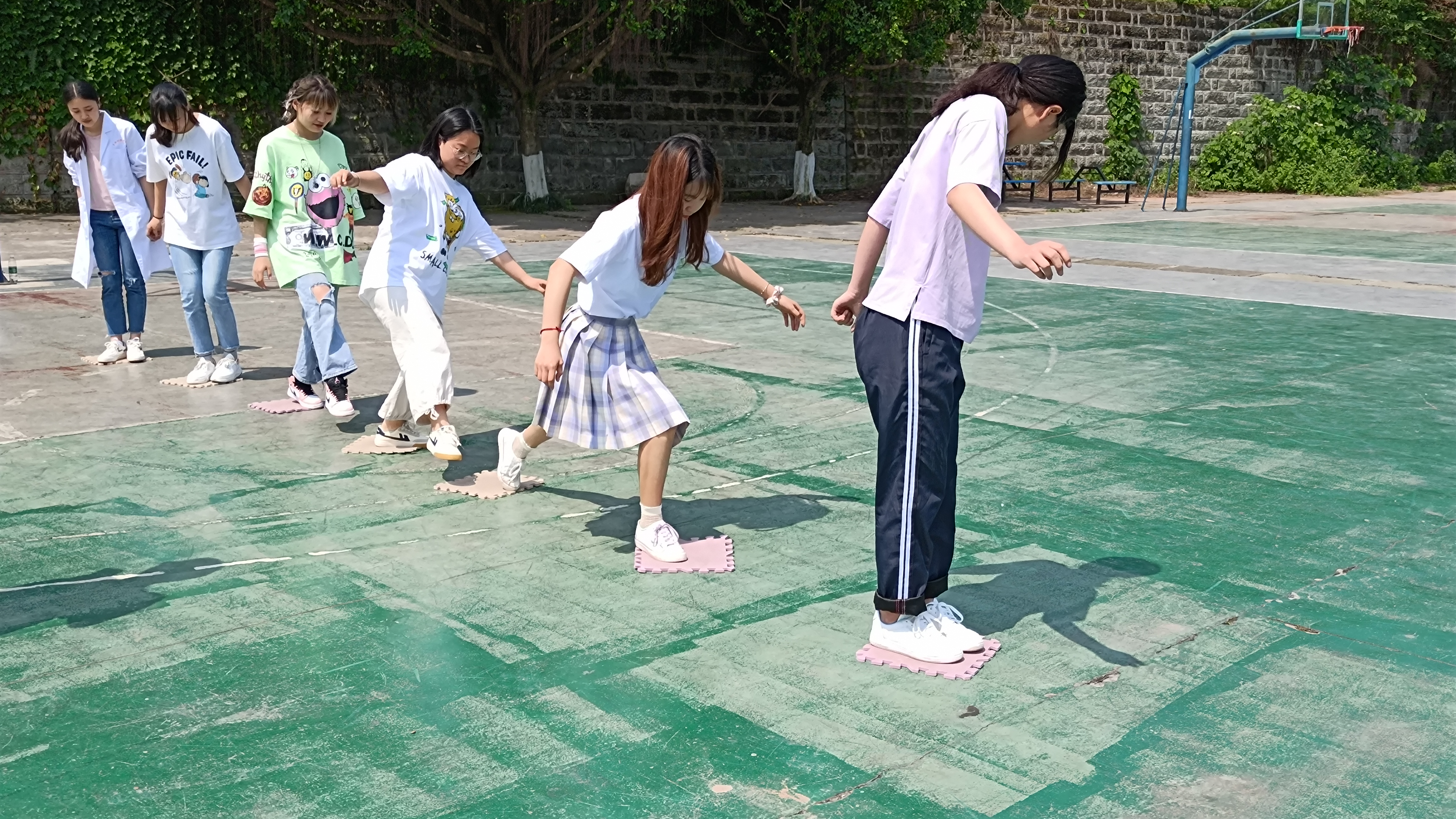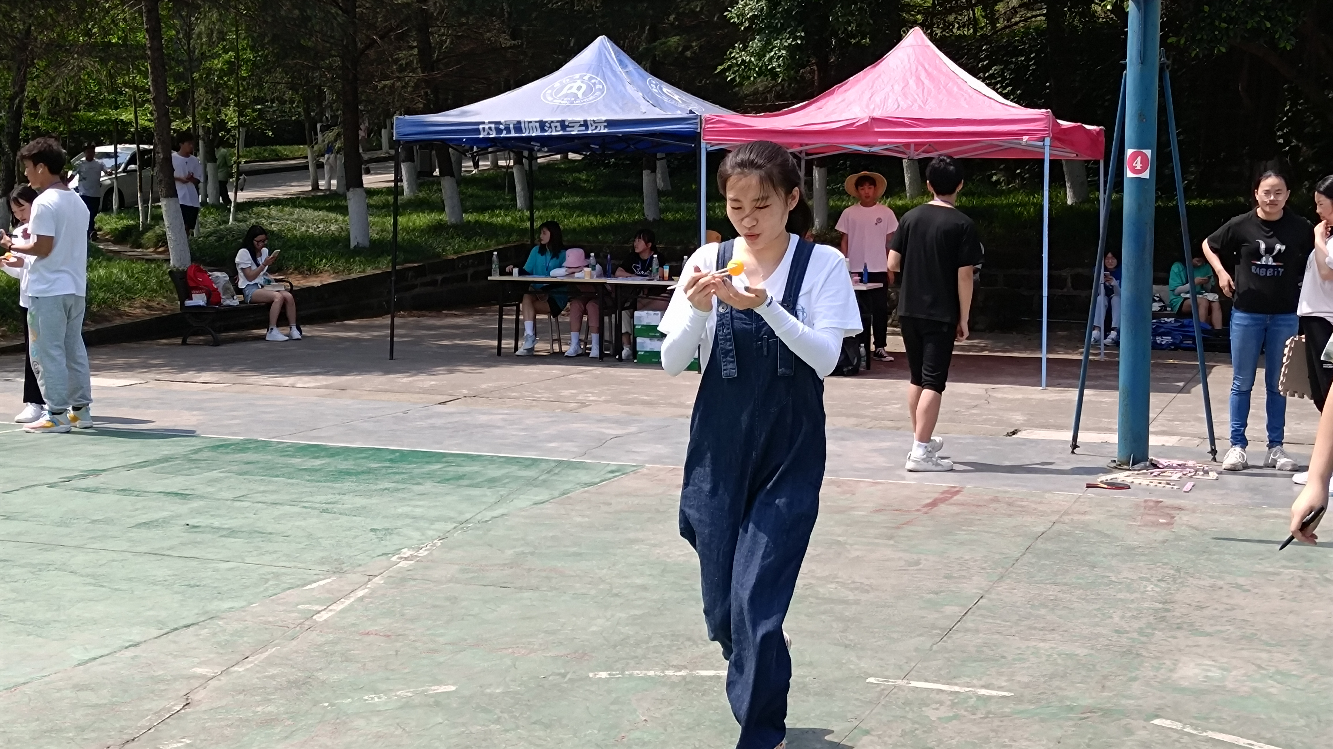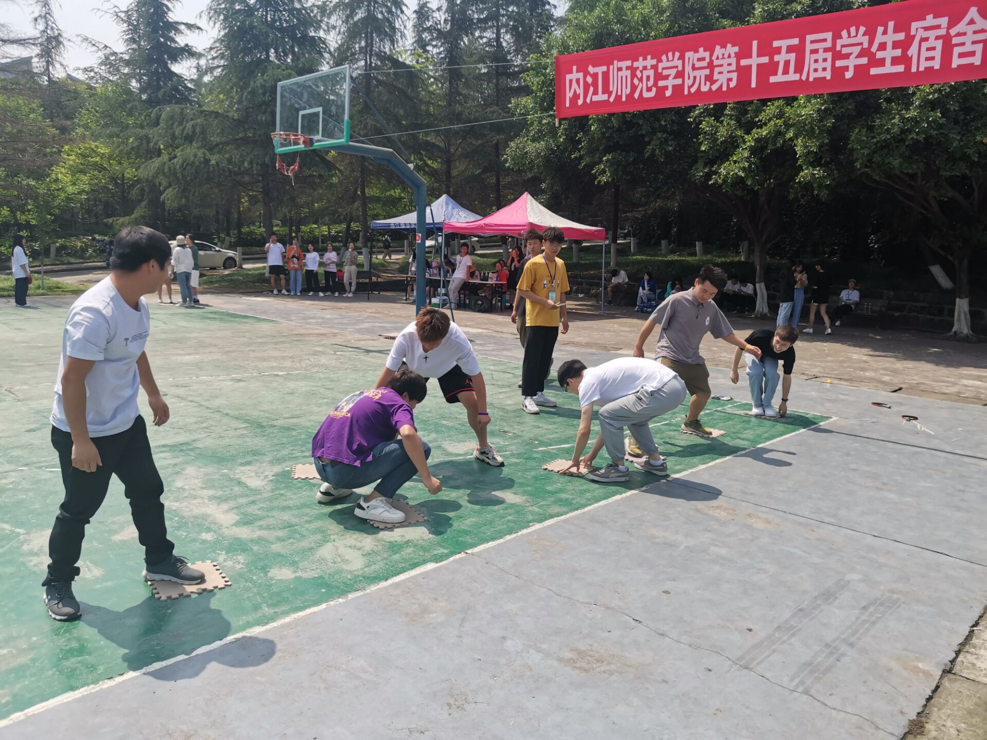 此次比赛由送鸡毛信、搭桥过河和现场答题三部分组成,通过团体作战的形式,各部分接力完成,用时最短者获胜。其中,送鸡毛信由四人参加,全程60米,第一位出发同学记熟裁判发放的五位数字,并在起点处用筷子将乒乓球夹起运送乒乓球到10米处放置第二个同学的球拍上,传达裁判员发送的五位数字,全程不可用手触碰乒乓球,不可掉球,否则每次加时五秒。赛场上,参赛选手们热情高涨、跃跃欲试。比赛正式开始时,参赛队伍展开激烈的角逐,呐喊声此起彼伏,一次次将运动会推向高潮,选手们互帮互助、团结协作,展现出了“友谊第一、比赛第二”的良好精神风貌,也发扬了“爱拼才会赢”的拼搏精神。现场答题时,以寝室为单位,答题10道题算完成比赛,现场答题内容主要包含党史党规、校史校情、员工寝室规章制度、公寓安全常识等。搭桥过河为六人参赛,所有同学利用七个垫子,齐心协力通过河流,过程中所有同学不能接触地面,且每块垫子都需要随时被人体接触,选手们全力以赴,现场气氛热烈,加油、呐喊声不绝入耳,大家在充满欢声笑语的趣味游戏中度过了美好的时光。
