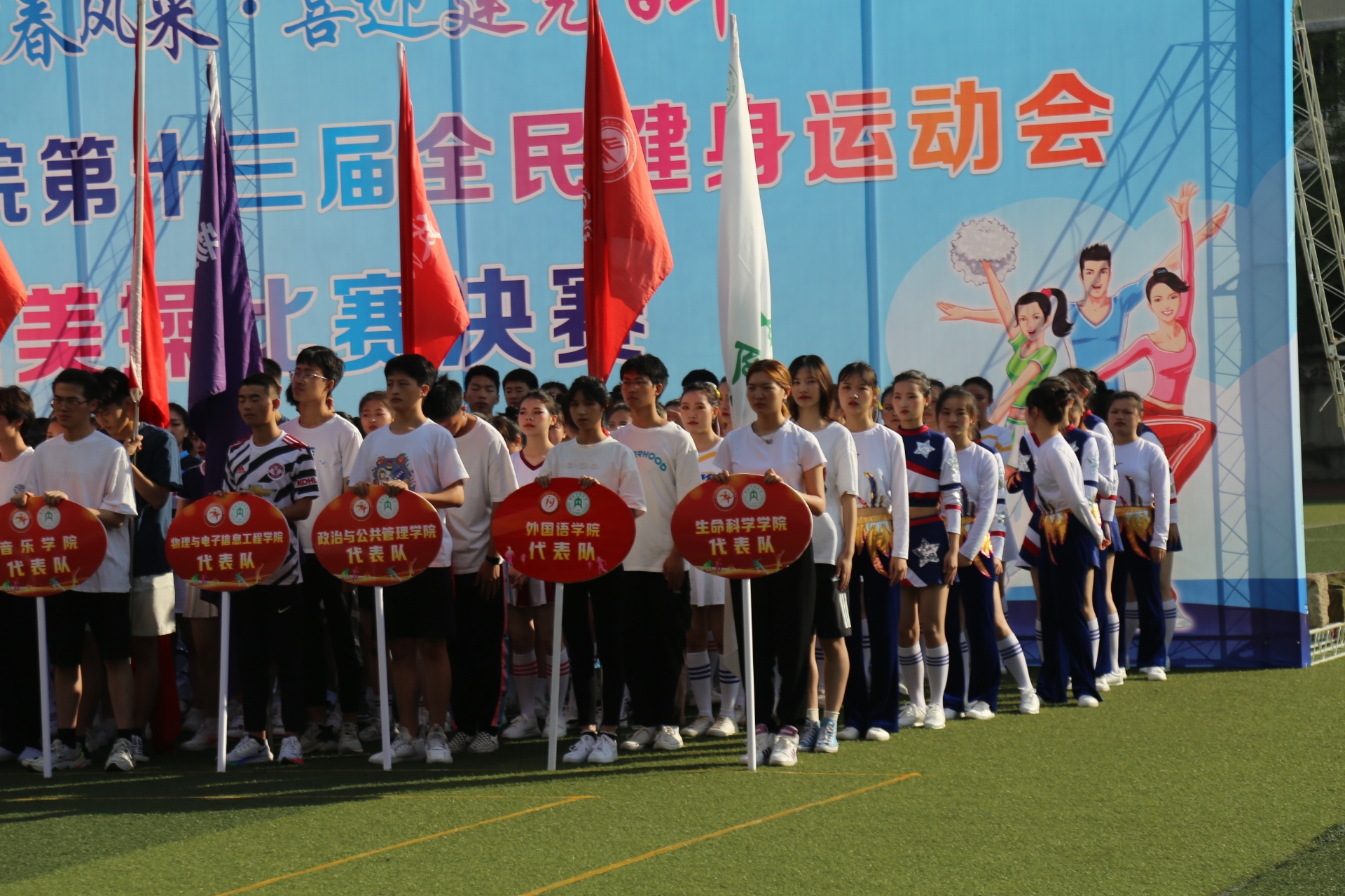 本次活动的主题是“绽放青春风采,喜迎建党百年”。健美操开幕式开始,各个队伍进场。到位后,由各位领导、裁判员、运动员逐一宣誓,要求做到公平、公正、公开!开幕式结束,比赛正式开始。公司参赛队伍分别是下午第六组和第二十四组。第六组是校园青春健美操《青春魅力》,第二十四组是《初级规定套路》。参赛同学们的健美操动作赢得评委和同学们的一致好评。最终,第四组以高分夺得本次健美操比赛常规动作项目的第二名。
